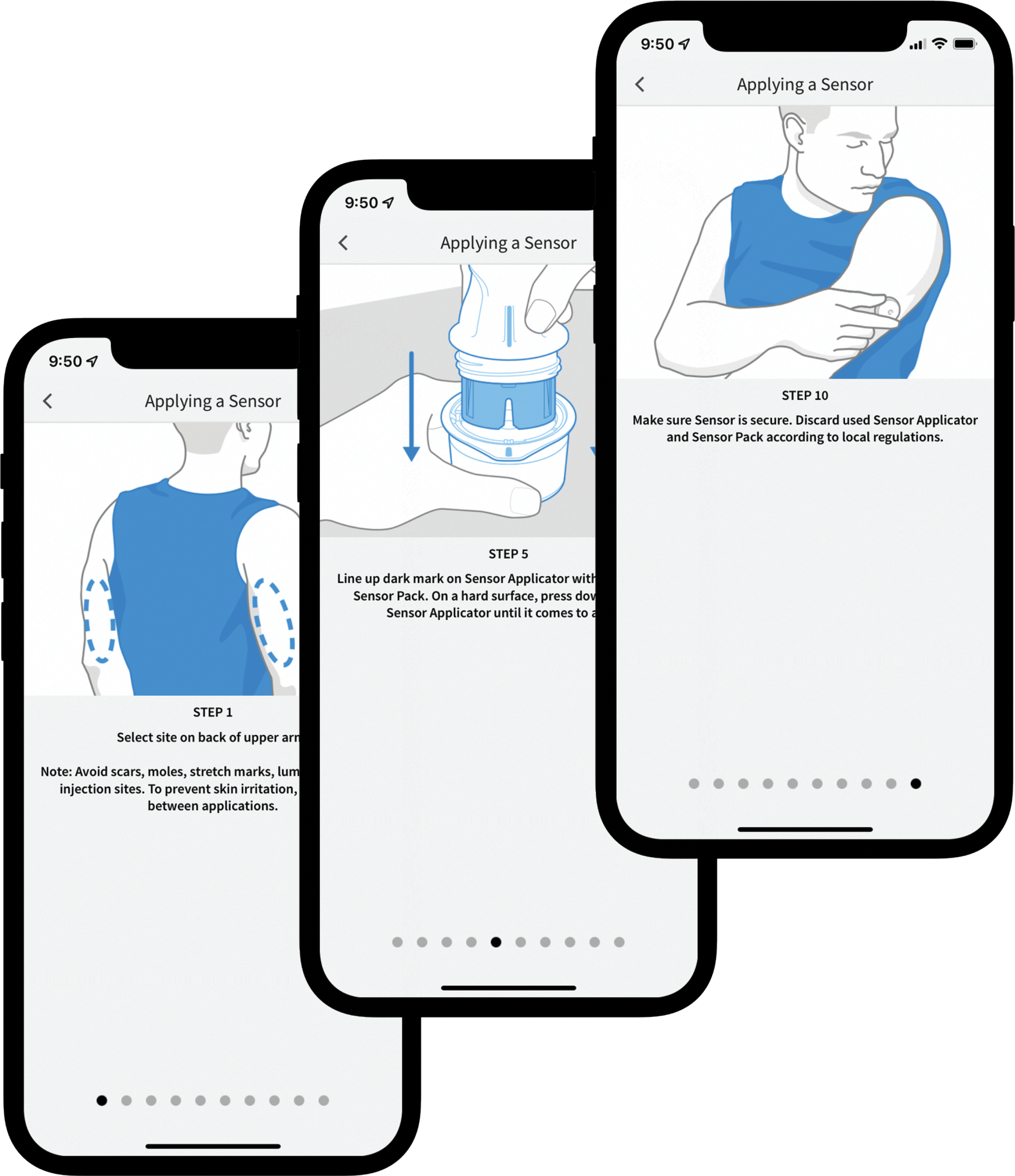 Apply the sensor. The app will guide you through |